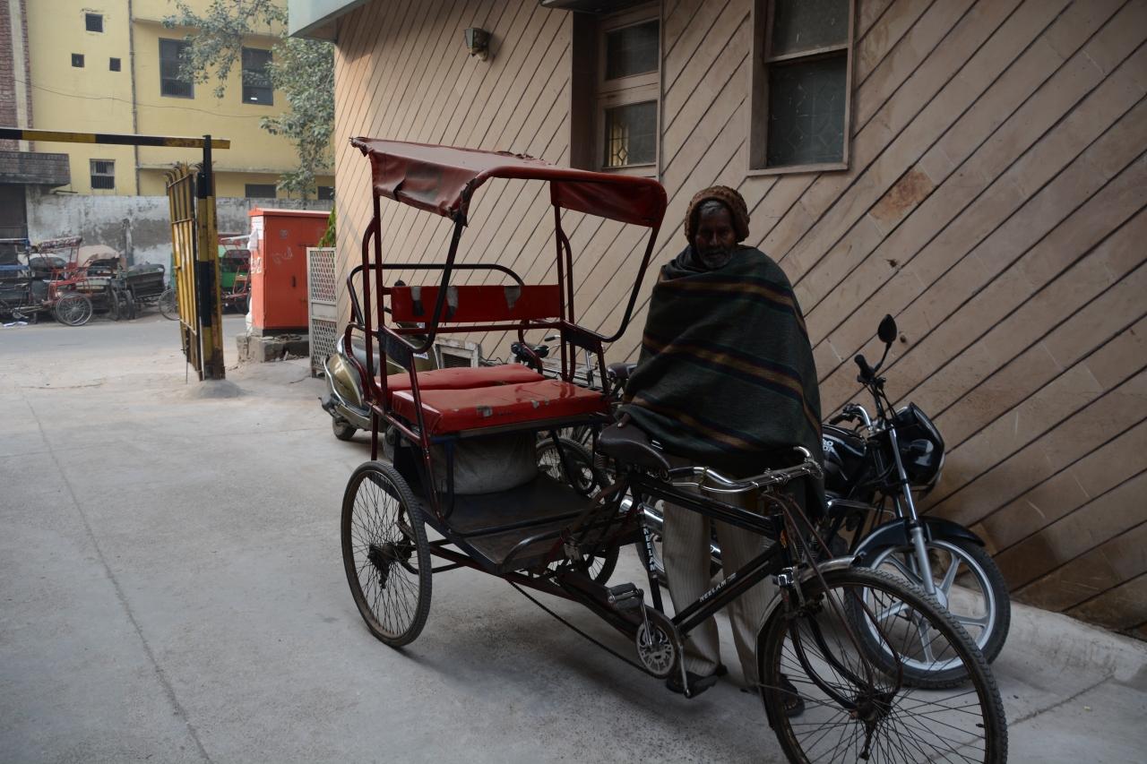 昼食後、オールドデリーでサイクルリキシャに乗り換えて、レッドフォート付近までドライブです。