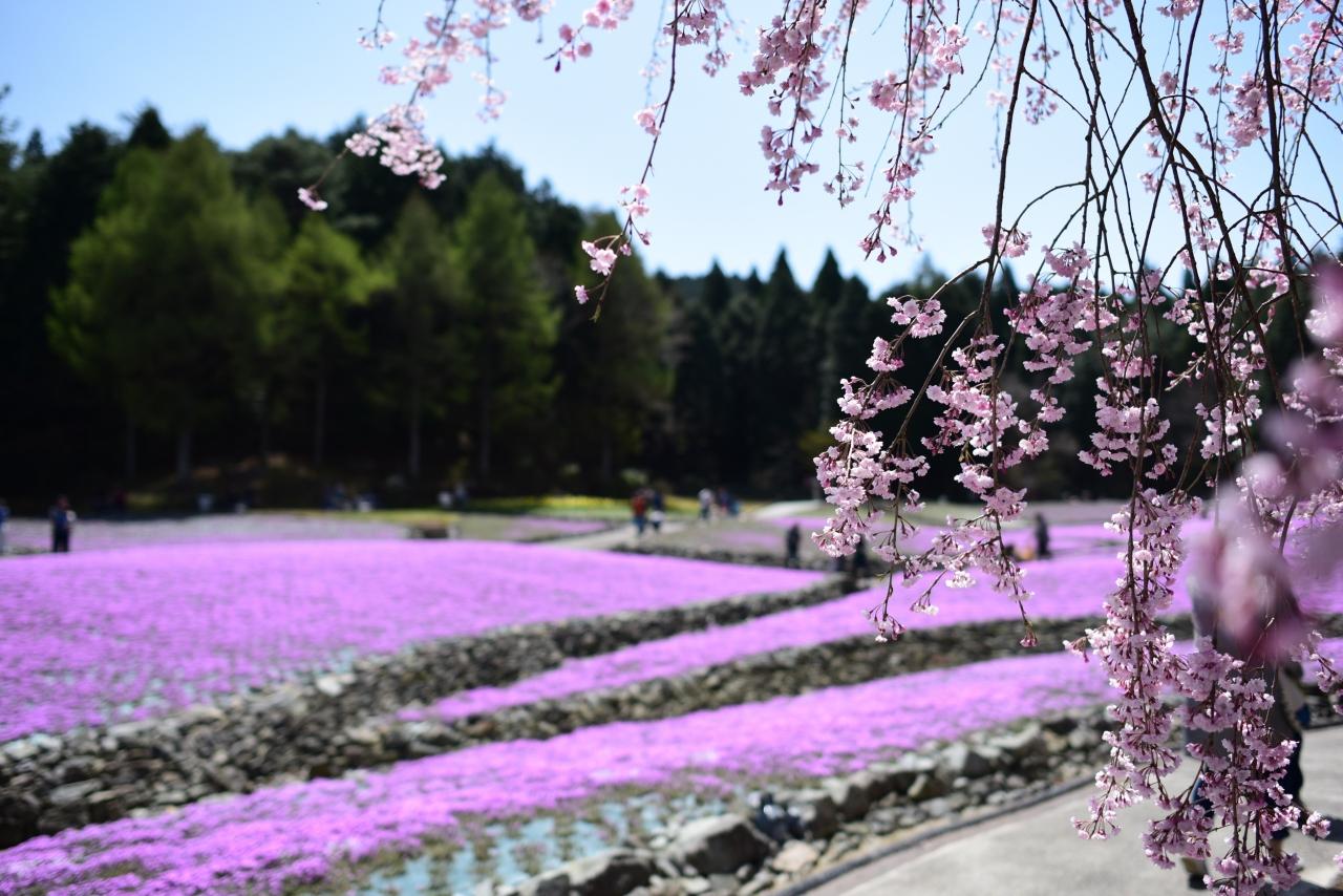 「花のじゅうたん」では、4月中旬から5月中旬にかけて、約5000?ある庭園全体にピンクのじゅうたんを敷き詰めたように、見事な芝桜が咲き誇ります。