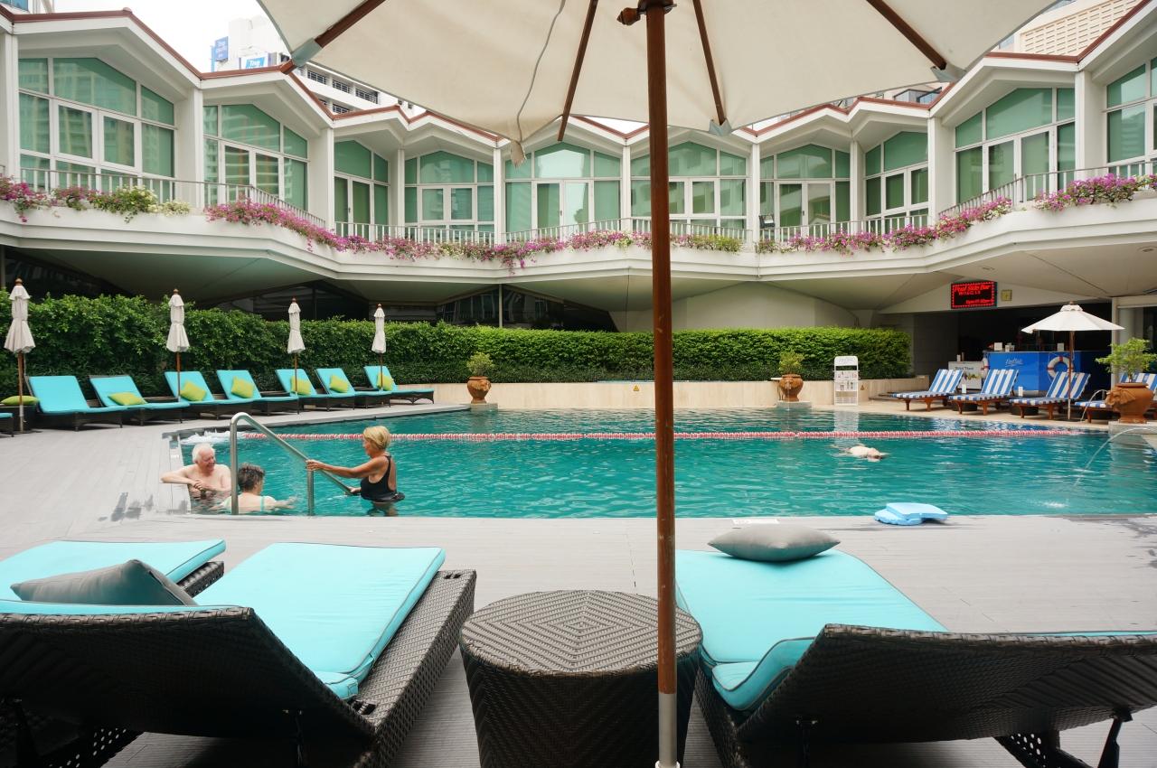 写真はロビーから見えるホテルの中庭です。落ち着いたホテル。交通の便がいい。 by たらさんデュシタニ バンコク ホテル ホテル