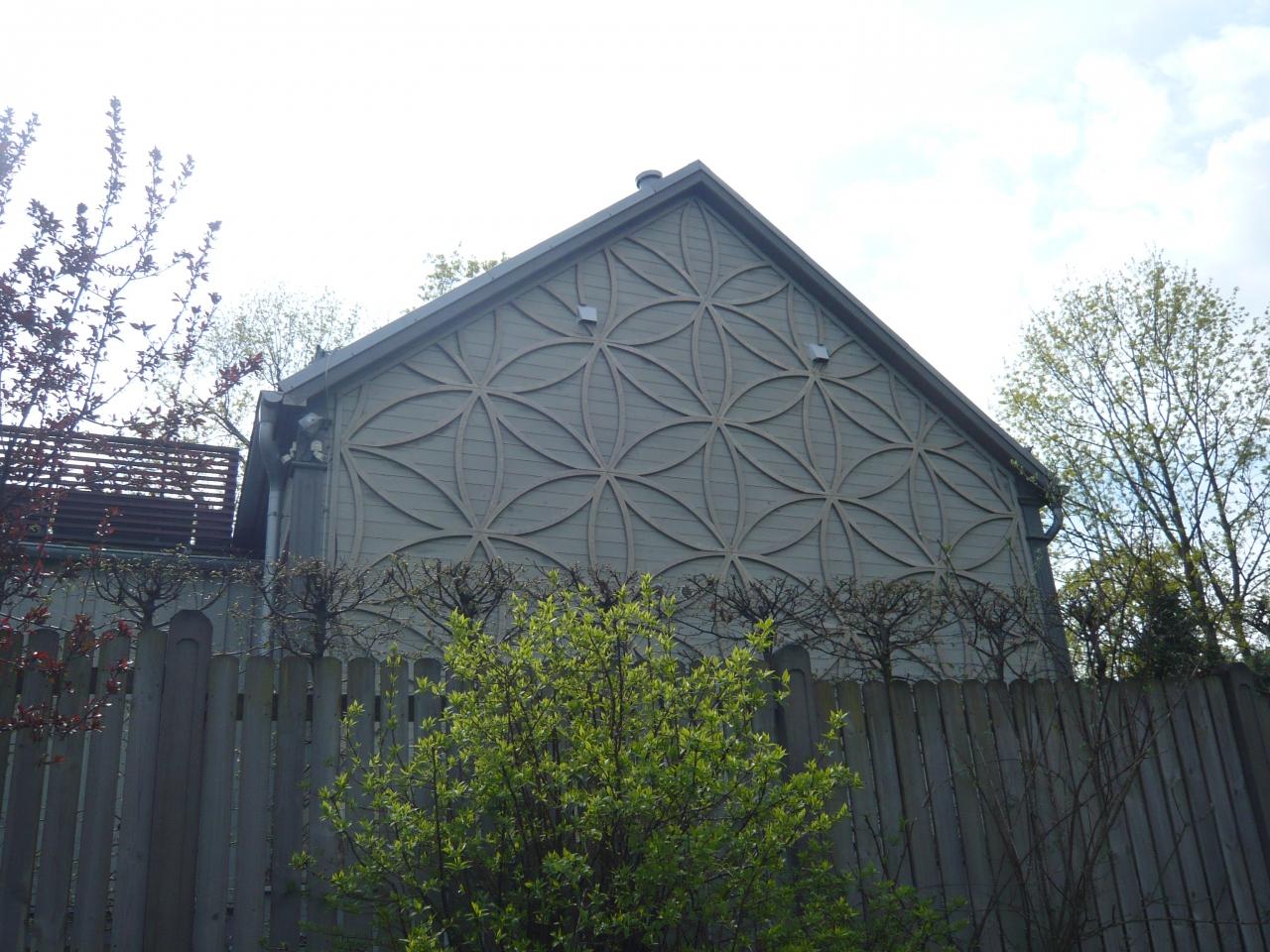 バス停へ行く途中、窓枠にも遊び心が。