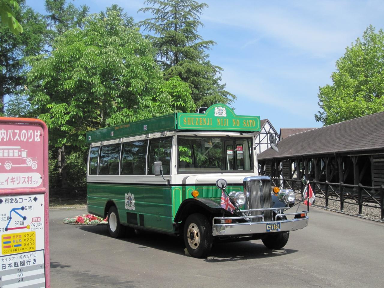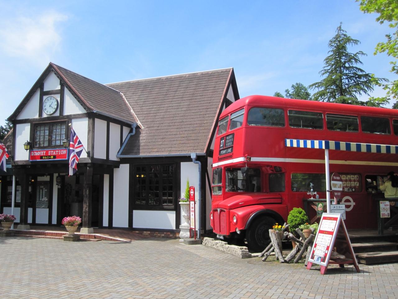 園内に入るとイギリス村が有って、2階建てバスが有りました。