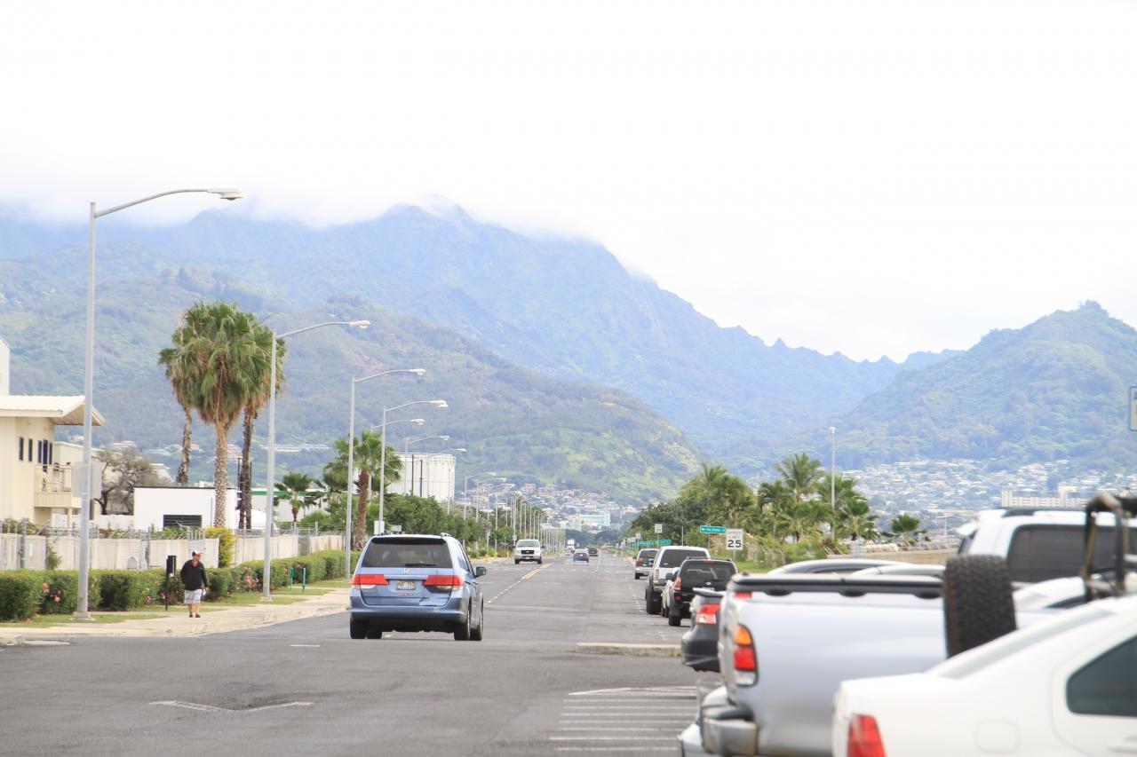 ホノルル空港そばのケエヒラグーン沿いの道路です。 -