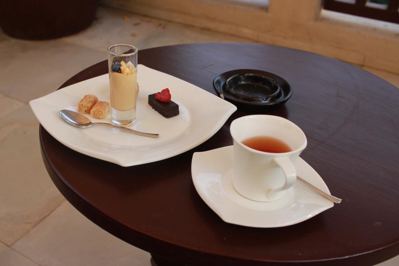 お昼は暑すぎてテラス席が利用できませんが、朝食と夕食はテラスでの食事が可能です。 -