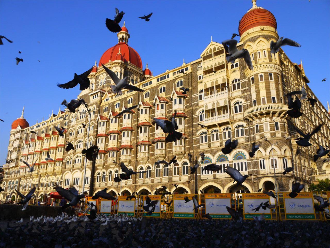 広場の一角ではタージマハル・ホテルをバックに鳩やカモメが舞う。