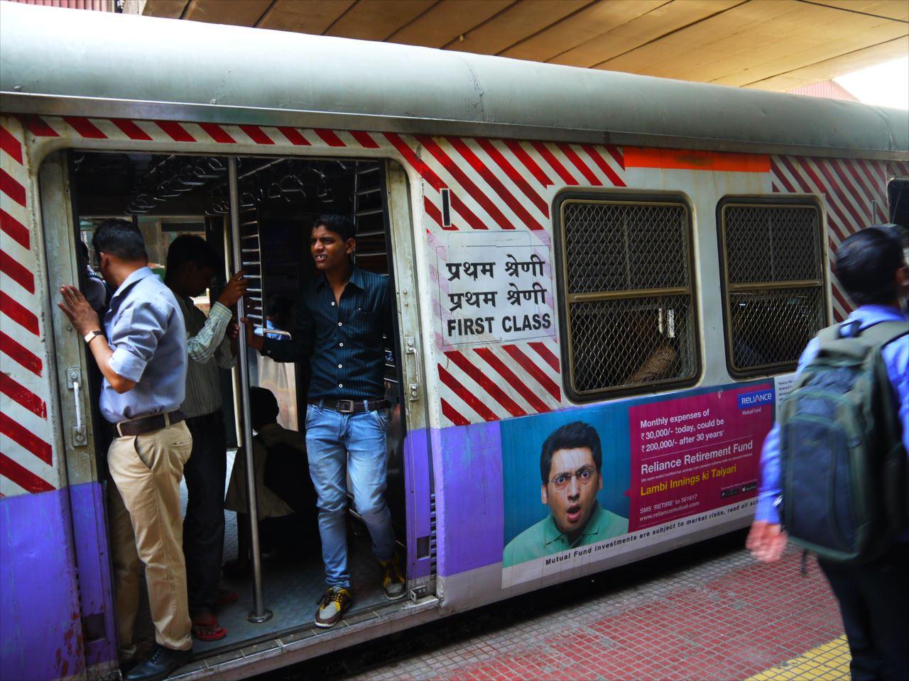 おお、これこれ!出た〜、ムンバイの列車、取っ手攻撃