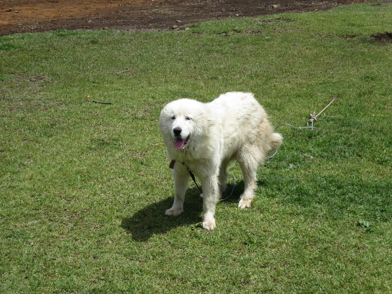 牛島峰には、あたり一面芝生が広がり、乗馬を楽しむことができます。(4客寄せに?)大型犬2頭がつながれていて観光客の人気を集めていました。