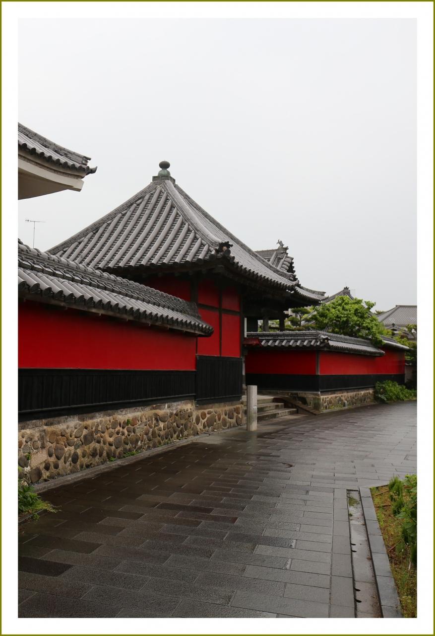 深紅に塗られた壁は城下町・中津の中でもひときわ強烈な印象を与え、別名・赤壁寺とよばれています。