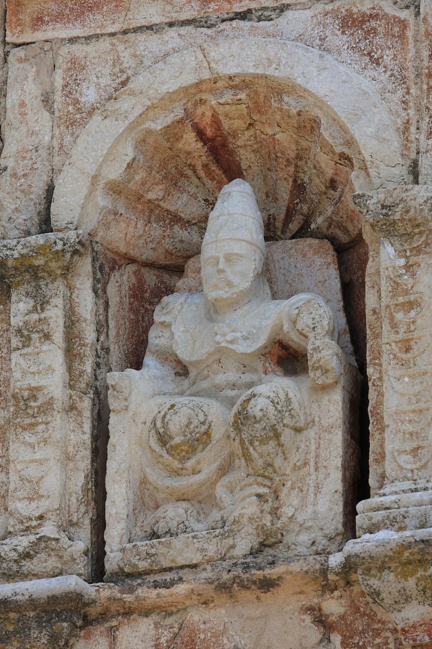 で、入口にはこの彫刻。どうも王様のように見えるが