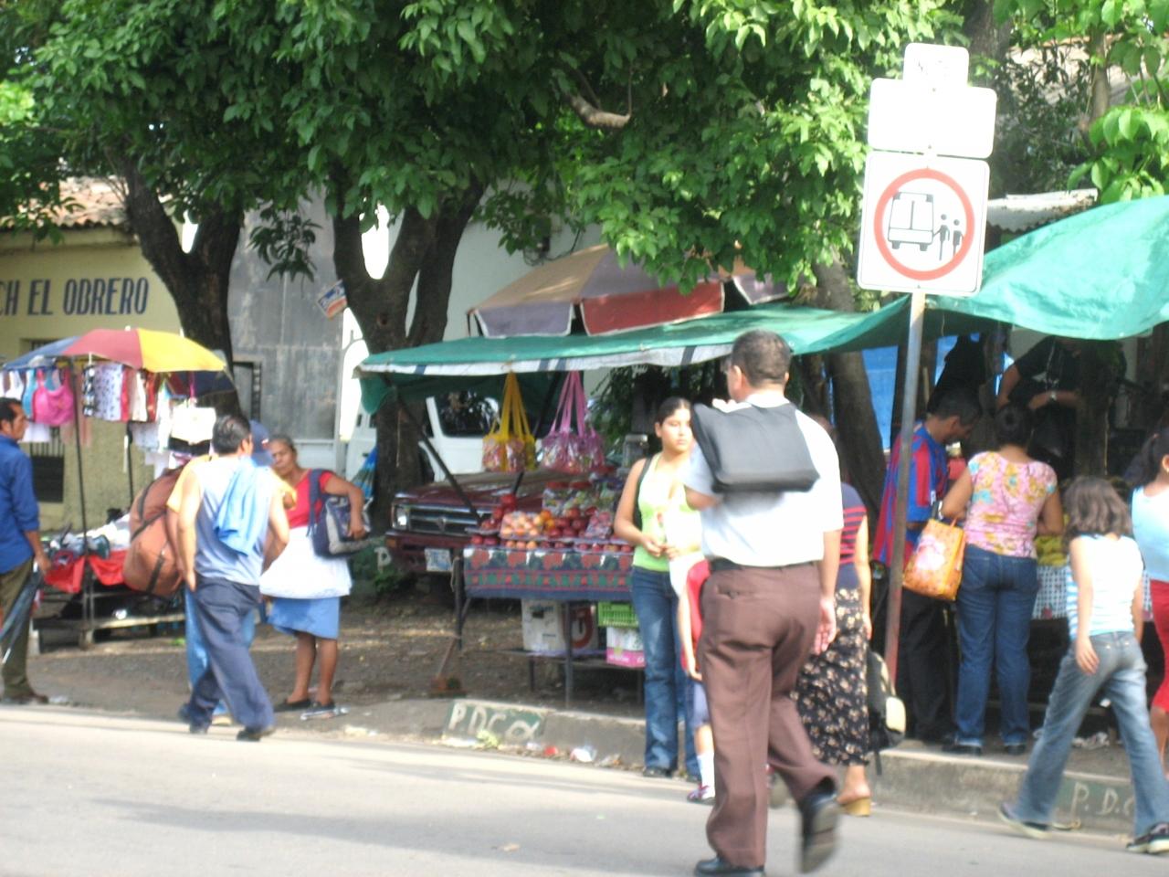 エルサルバドル アカフトラ ソンソナテ行きのバス停交差点で