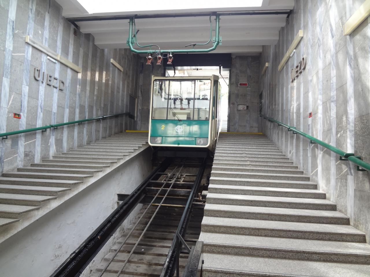 公園に行くケーブルカーの列。