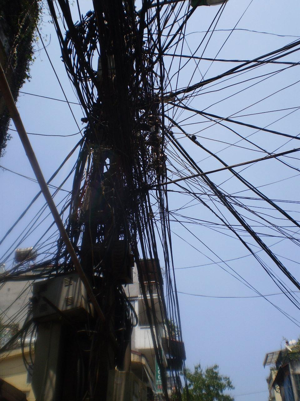 電柱 電力事情が悪く蛸足配線 盗電?もあるかも。 -