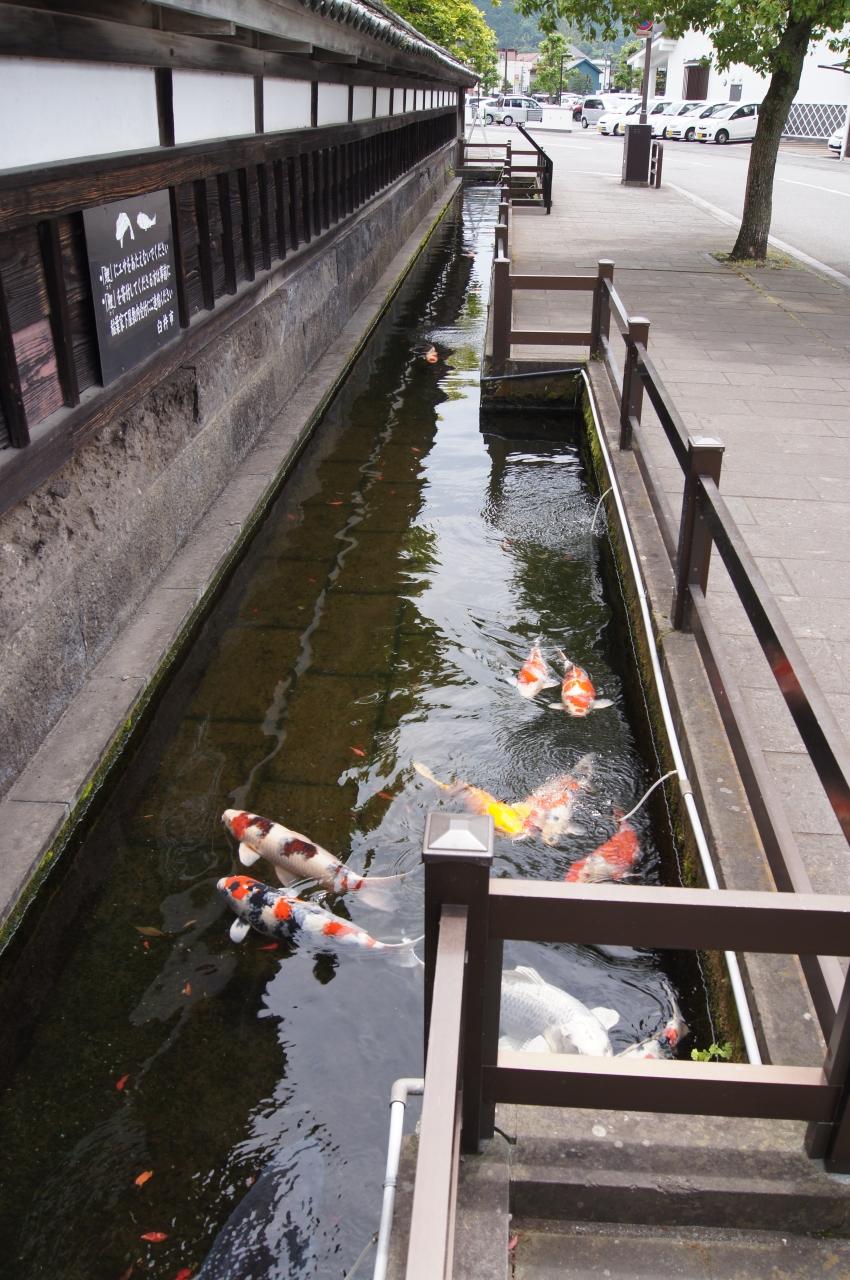 駐車場の前は稲葉家下屋敷です。水路にはきれいな水と大きな錦鯉が。観光雑誌にもよく出ていますが、水路があるのはここだけでした。
