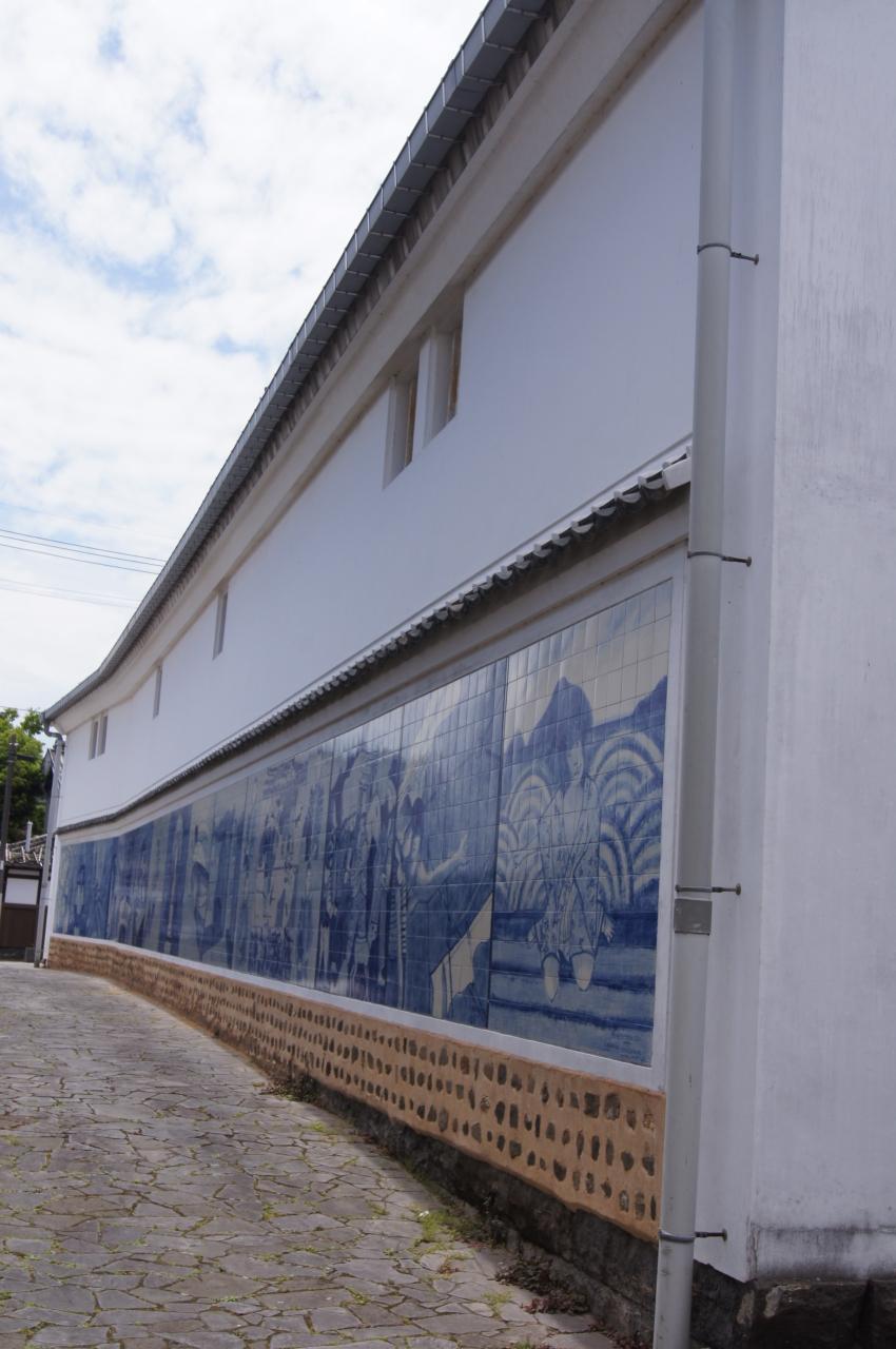 江戸時代の酒蔵ですが、今は装飾タイル壁画が施されています。久家の大蔵 名所・史跡