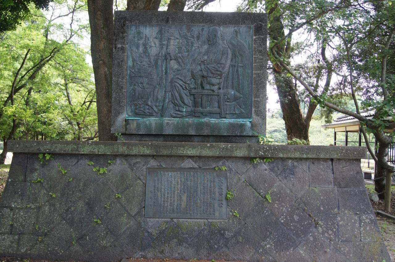 ここから次の日ですが、編集の都合順番を入れ替えました。車で臼杵城に登ります。護国神社に大砲の弾のレプリカがあります。