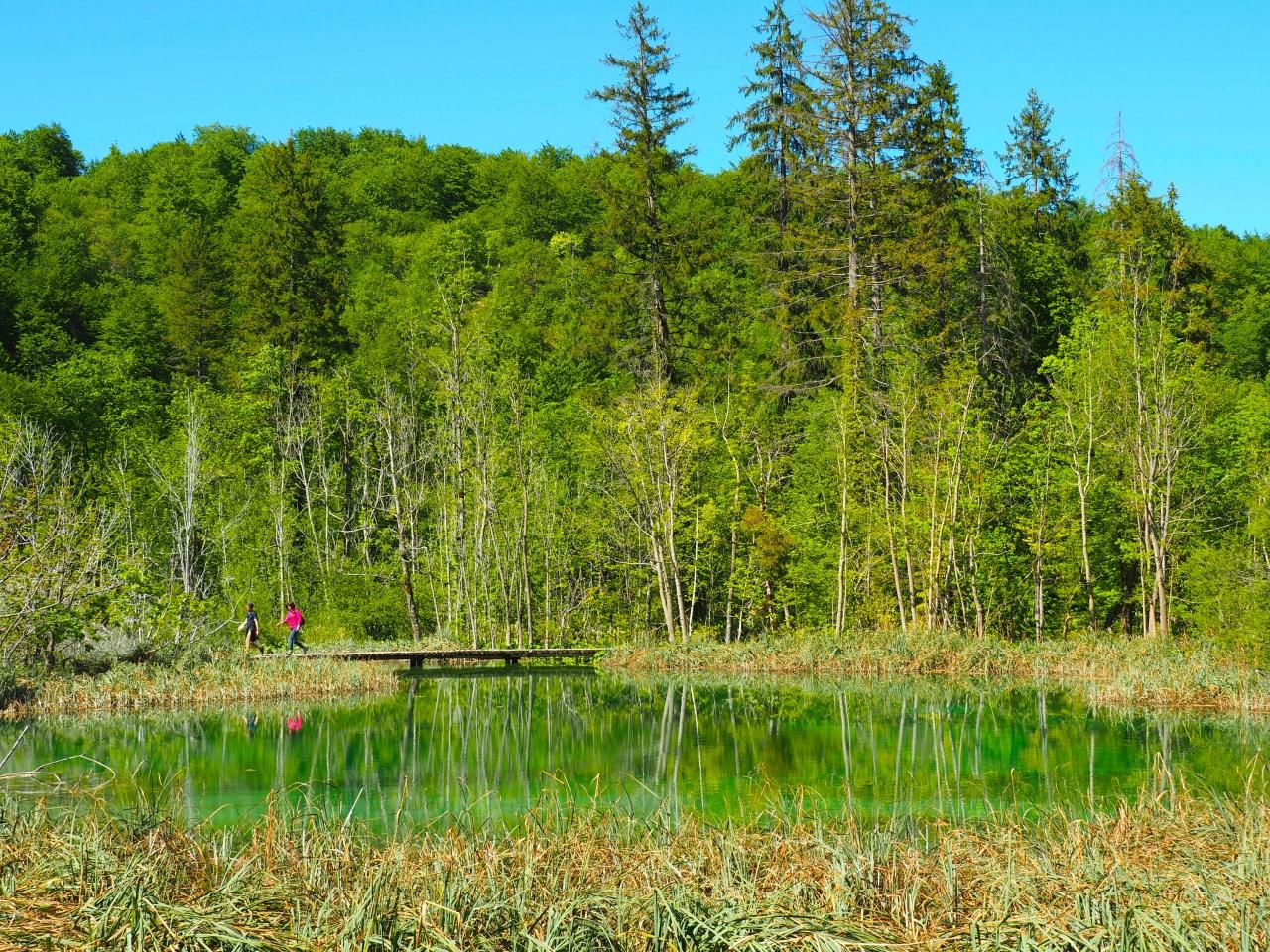 虹がかかるヴェリキ滝を後にして、上の方の湖群へ。