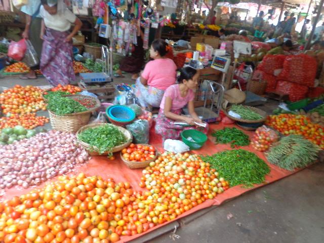 ニャウンウーのマーケット。結構広く、食料品が多い。