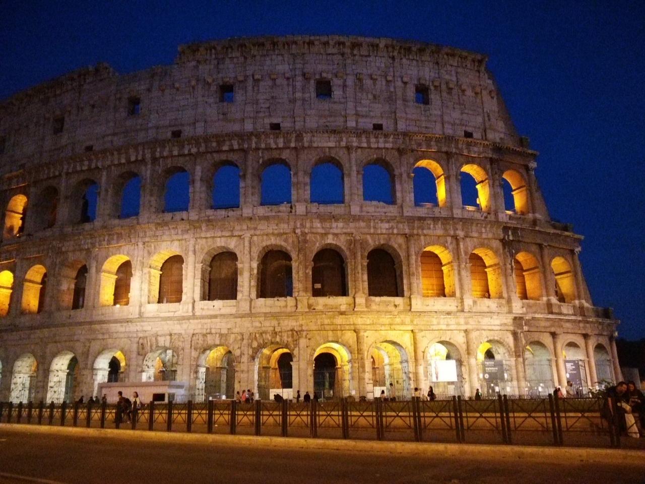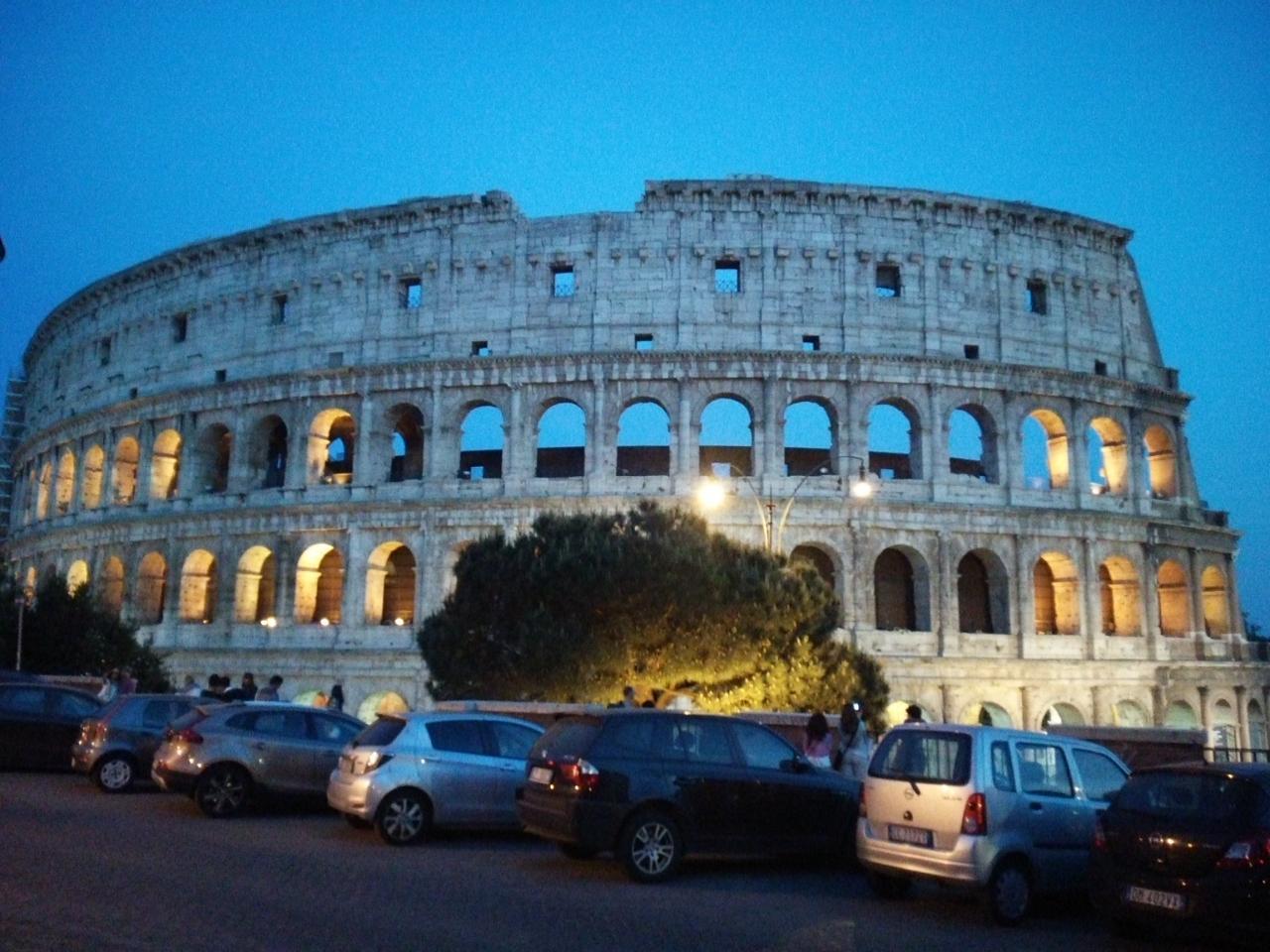 日が暮れるのを待ってライトアップされたコロッセオ