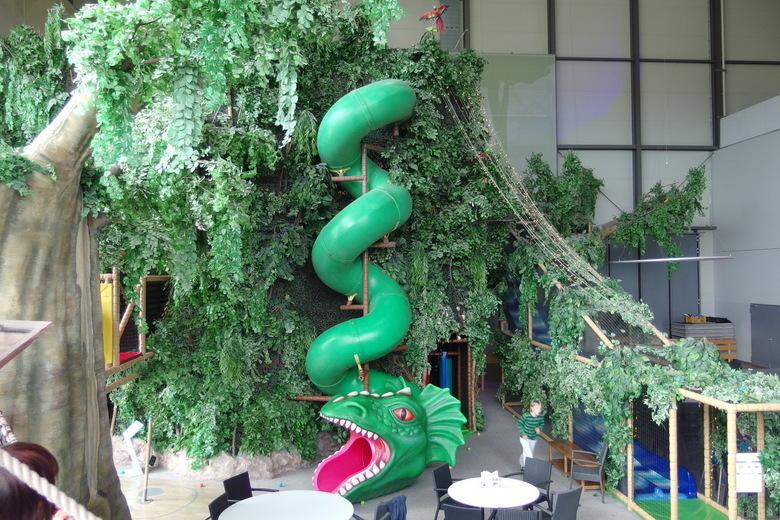 これも延々木の中のはしごを登り、天井付近の人間ロープウェイやぐるぐるスライダー。スリル満点、まだムリ、140cm以上。