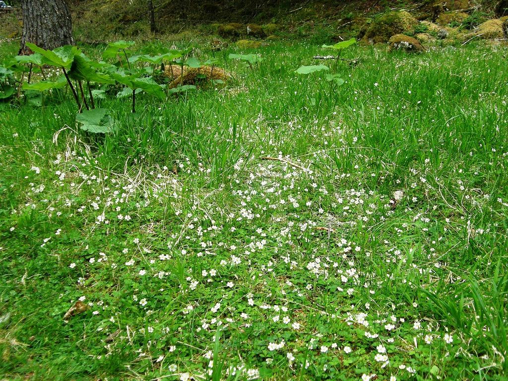 この辺でもシロバナノヘビイチゴの群落は続きます。