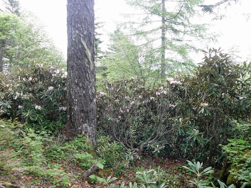 「カモシカ展望台」までの間もシャクナゲの木は多いが花は少なく残念です。