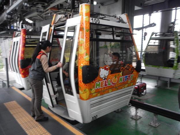 猫空ロープウェーのゴンドラにもハローキティ―のラッピング