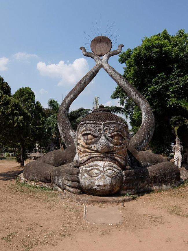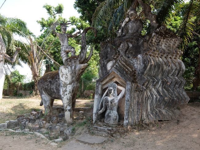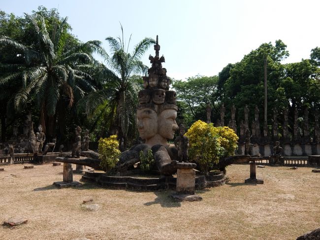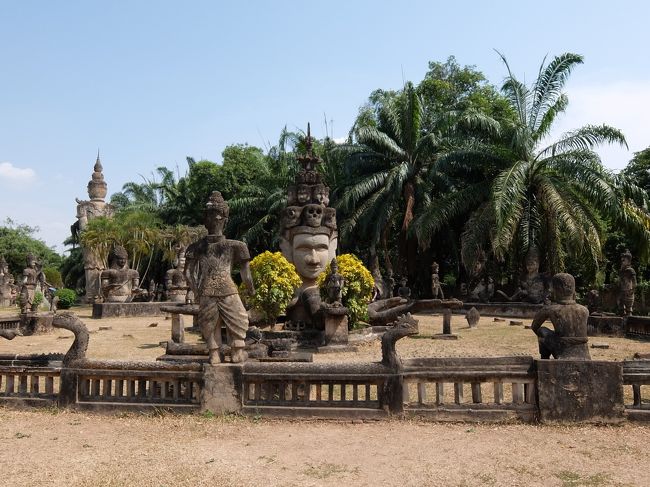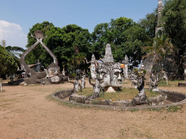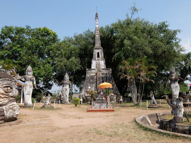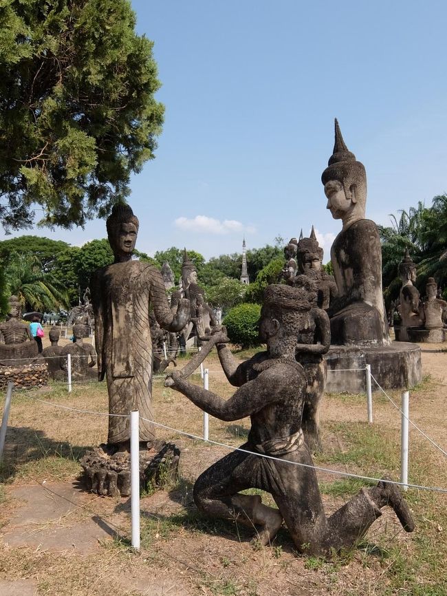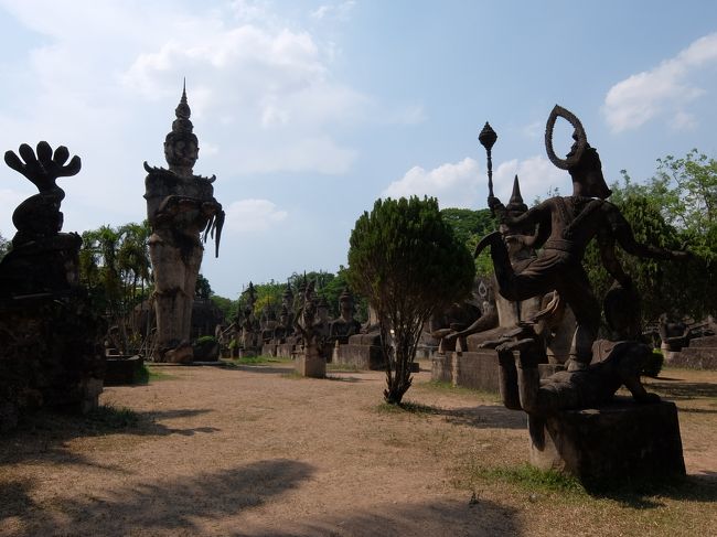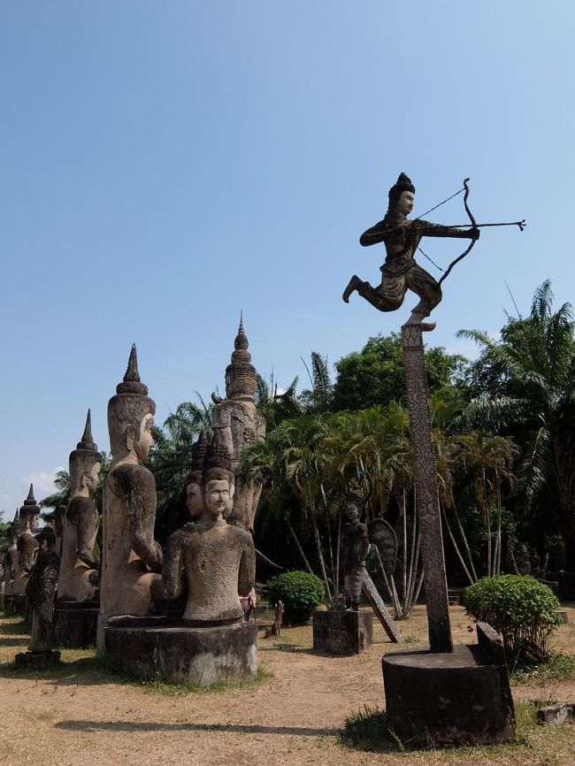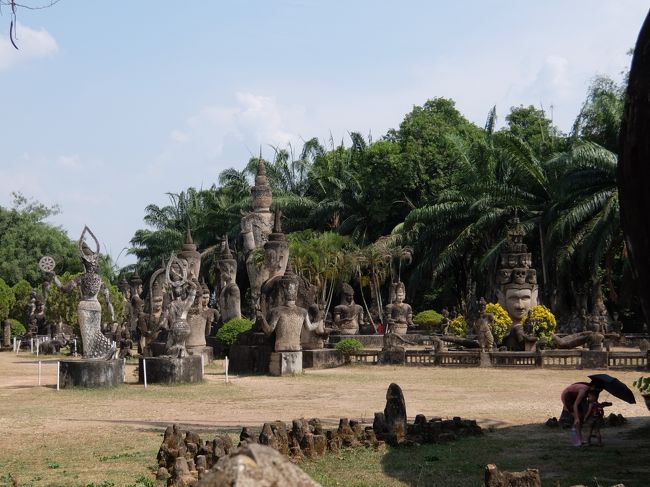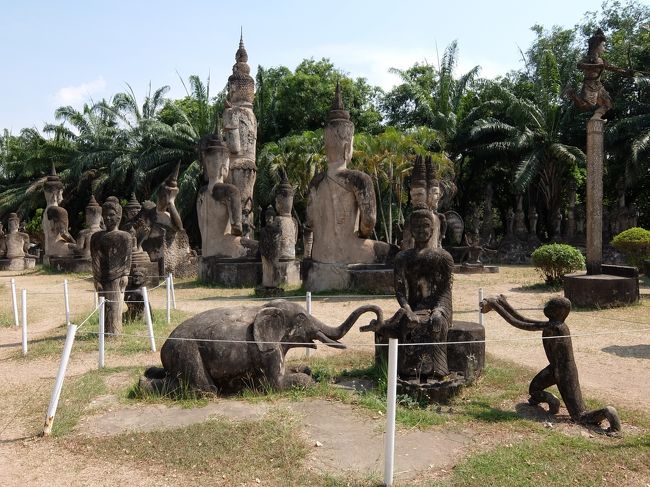 多くの仏像が無造作に立ち並んでいます。ブッダ パーク (ワット シェンクアン) 建造物