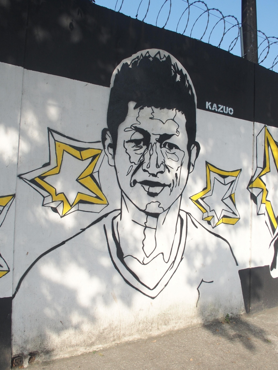 今日の主目的、カズの壁画。KAZUOになってた(笑)