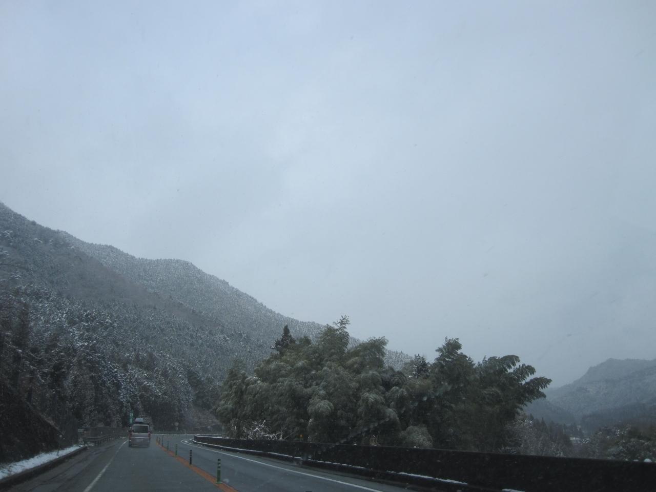 播但自動車道です。早朝はチェーン規制がでていましたが、今は解除しています。