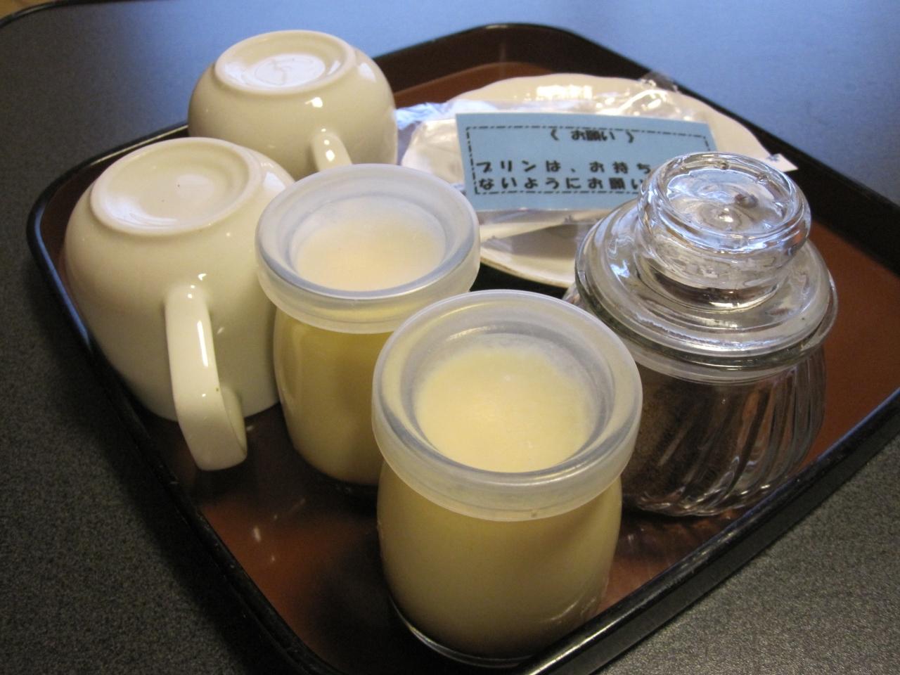 朝食後お部屋に戻ると女将さん自慢の手作りプリンが用意されていました。なめらかで甘すぎず、いくらでも食べられる美味しさでした。