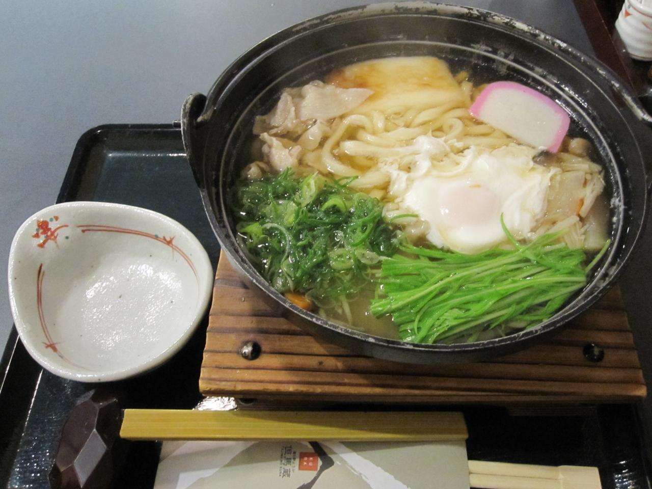 鍋焼きうどんです。お餅がはいっており、ボリューミー!