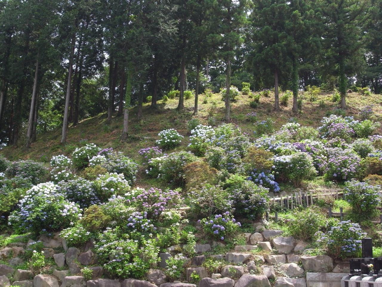 こちらの紫陽花は淡い色合いが可愛らしい。足利織姫神社 名所・史跡