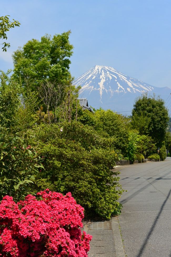電柱&電線がなく富士山を撮れるところまで散歩。つつじがいい感じにアクセントになっています。