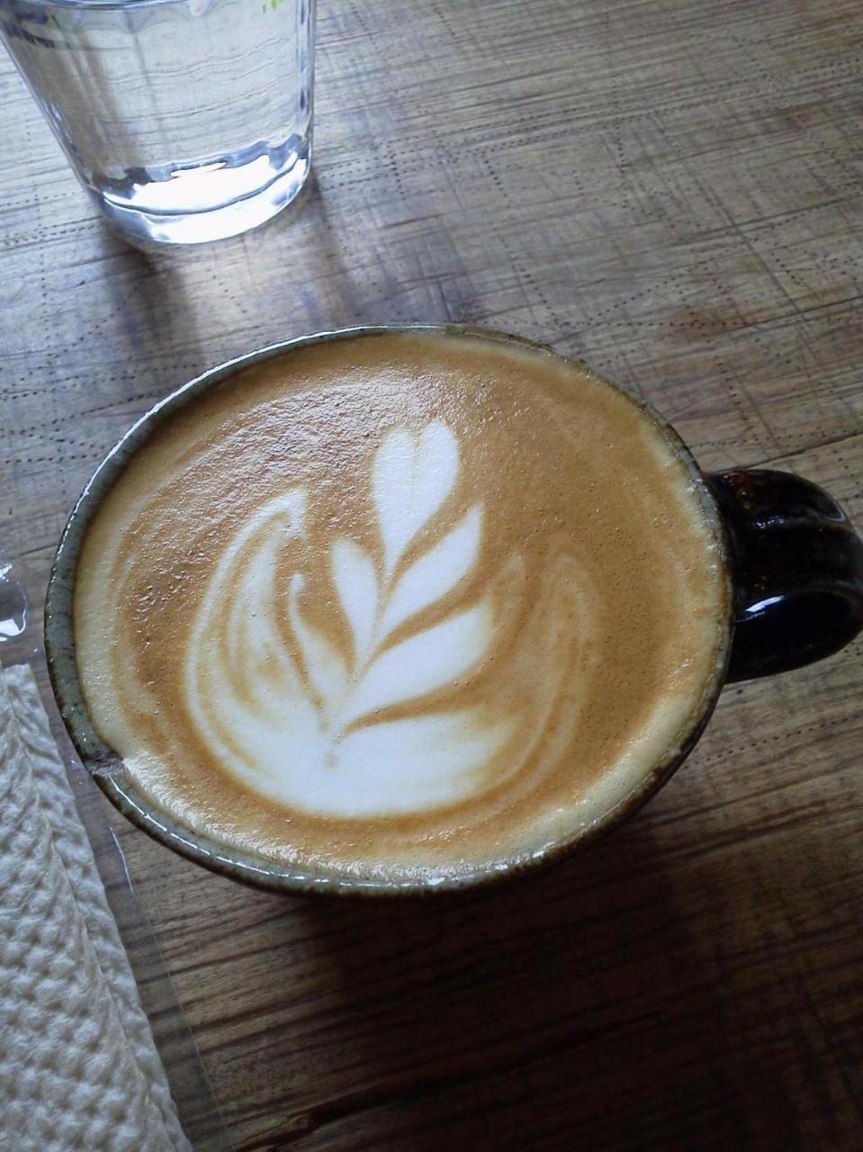 カフェラテはアート付で、器もこだわってる感じ。