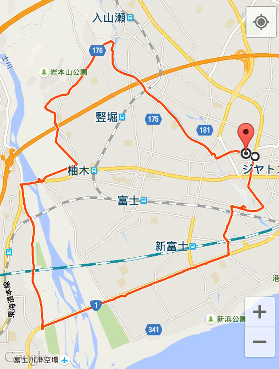 富士市役所近くのR139錦町交差点からアプリをスタートさせました。