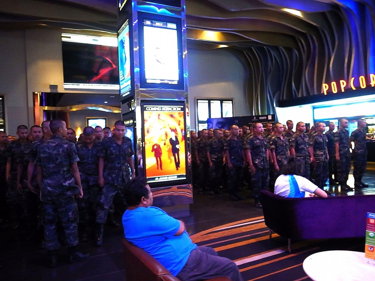 どんな映画をやっているかとシネコンに行ってみたら、映画を観終わったアーミーの若者が整列していた。