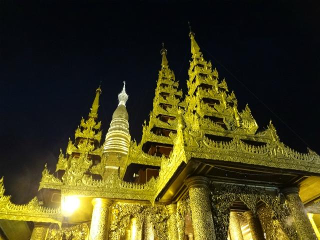 ライトアップされてなかなか雰囲気よかったんですが、この後にヤンゴン最大のパゴダに行く予定なので入口でUターンです。 -
