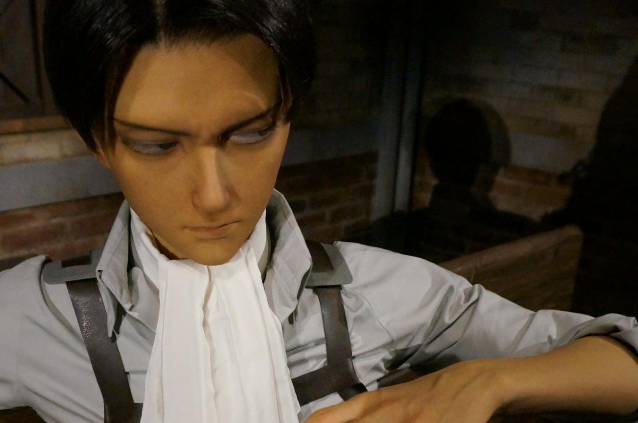 これはリヴァイ兵長で、隣に座って記念撮影もできます。 -