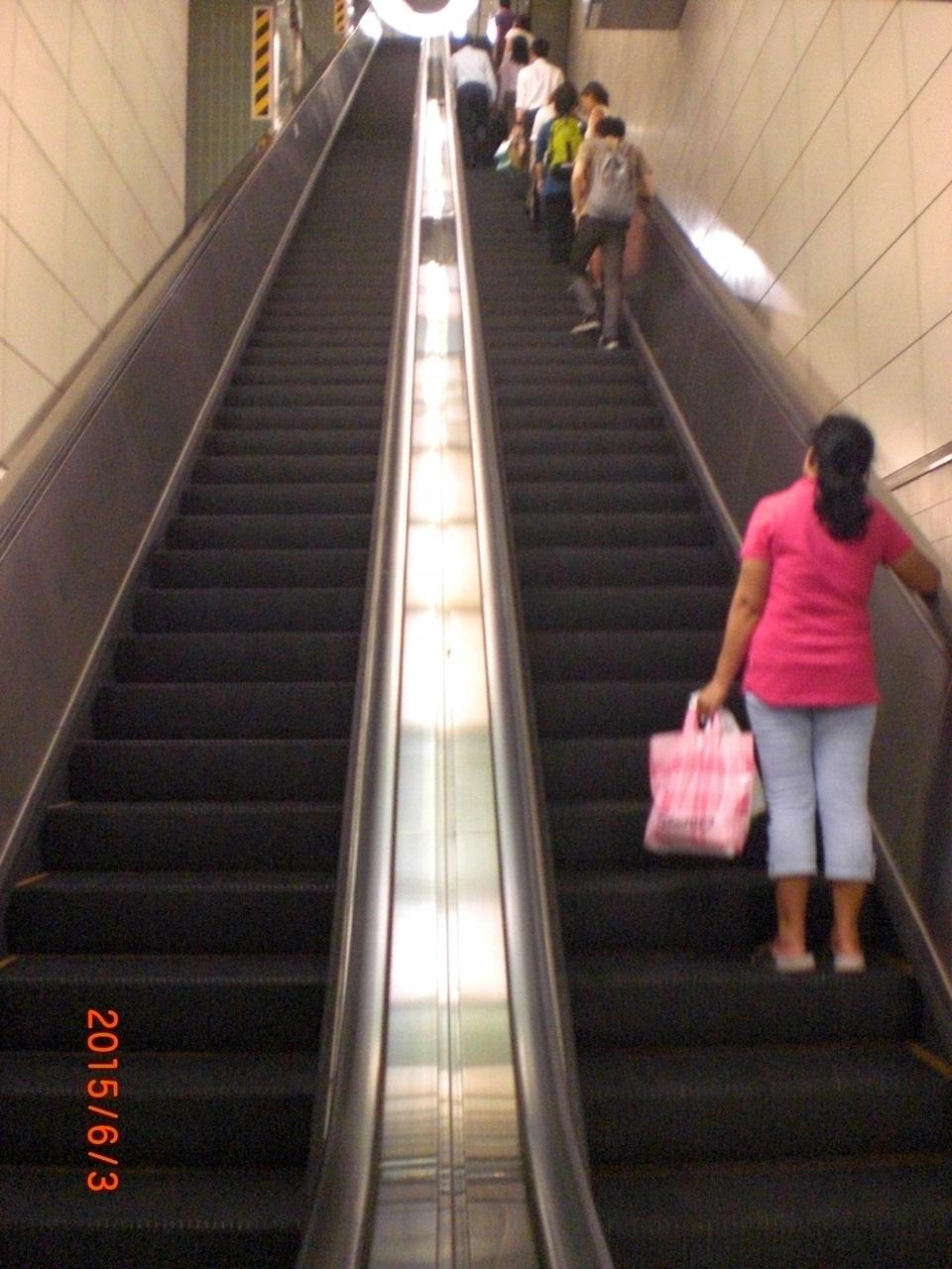 エスカレーターで立ったままで昇る際は、右側に立ち、