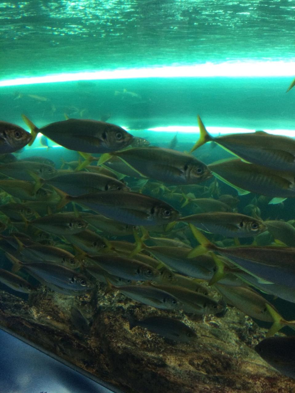 水槽のトンネルではイワシの大群がぐるぐる回ってる!すごーい!なんか引き込まれるみたい!