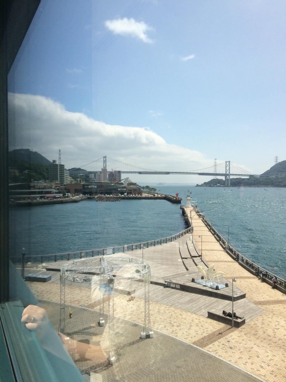 2階からは関門橋や唐戸市場を眺めることができますよ。 -
