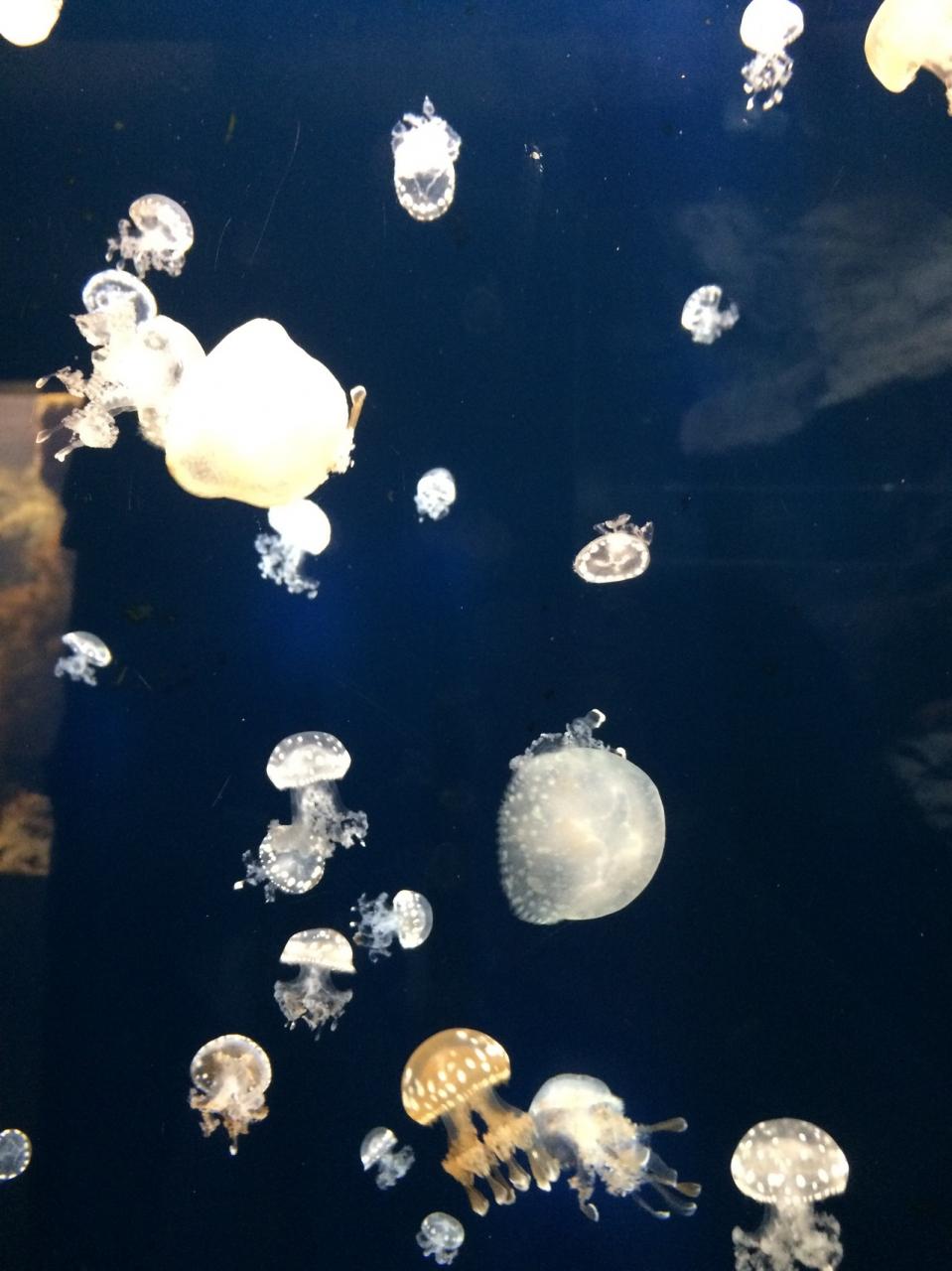 クラゲって水族館でみると幻想的でステキ〜なんて思うけど、海水浴で遭遇するといやーー!!って全く違う反応されるからかわいそう。。 -