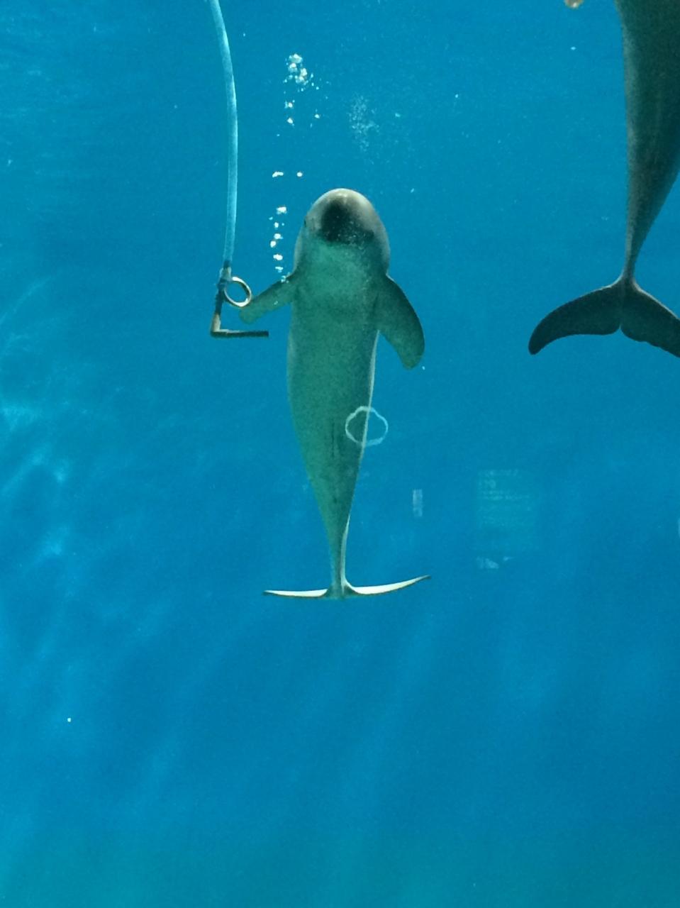 イルカの感触はゴムみたい!私たちがベタベタ触ってもおとなしくしてくれててありがとう。