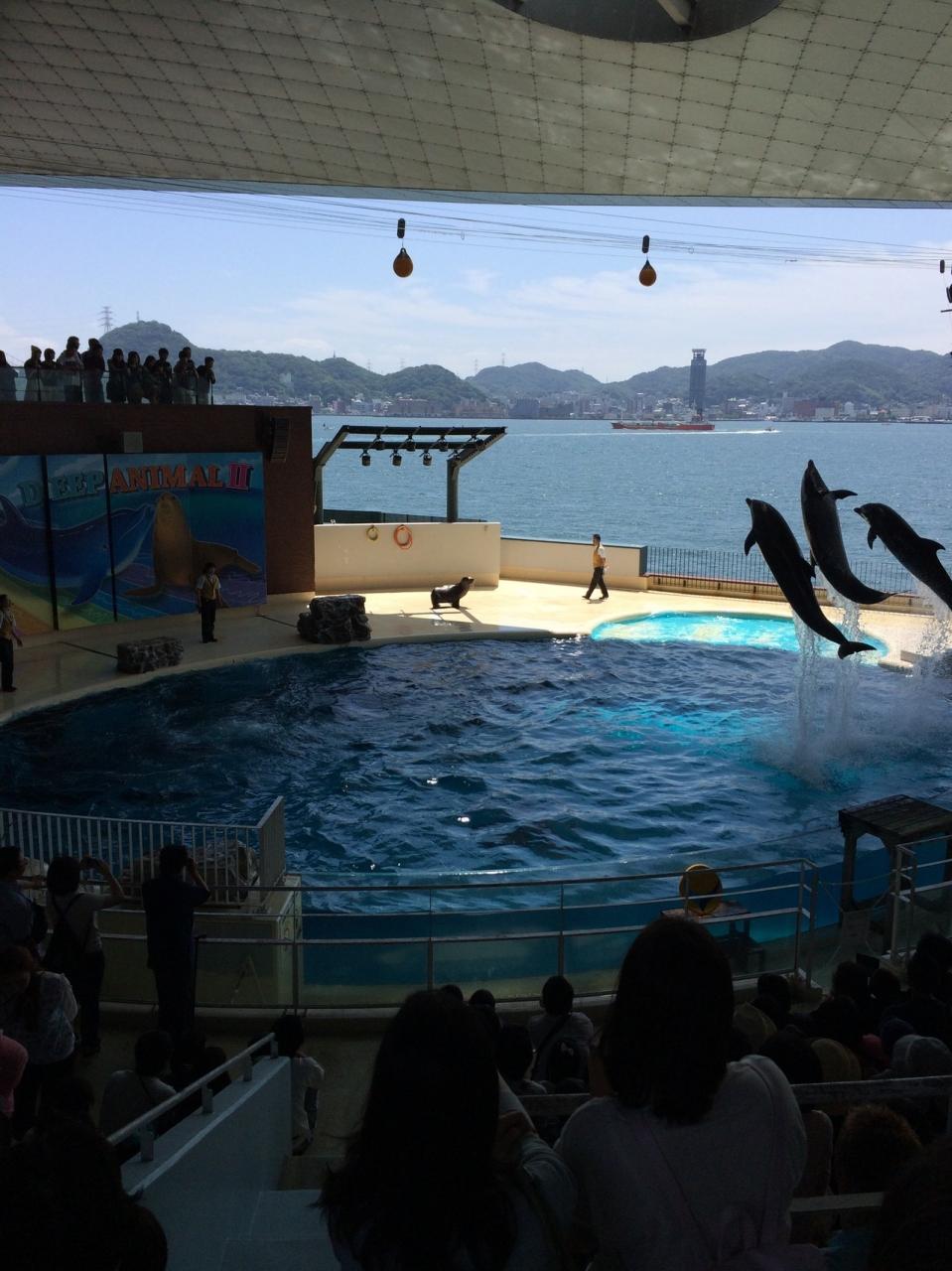 下関の海響館はイルカに触ることができるそうなので行ってみよう!ってことに。下関に行くなら唐戸市場で新鮮なお魚を食べようじゃないか♪