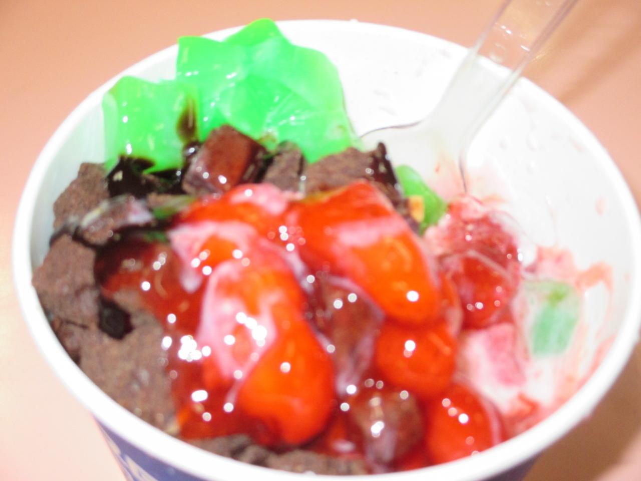 シー・サケート唯一のデパート、スエンヘン・プラザ(Suenheng Plaza)のフードコートで、アイスを食べる。35バーツで、いろいろトッピングできる。