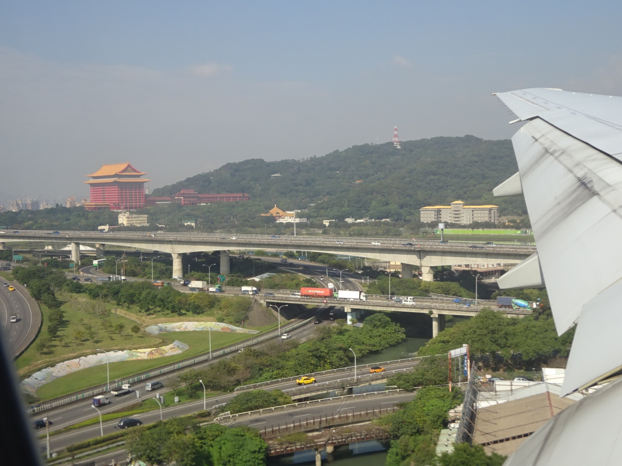 食事の後ウトウトと寝てしまいました。気が付いたら台湾上空に入りました。まもなく着陸。