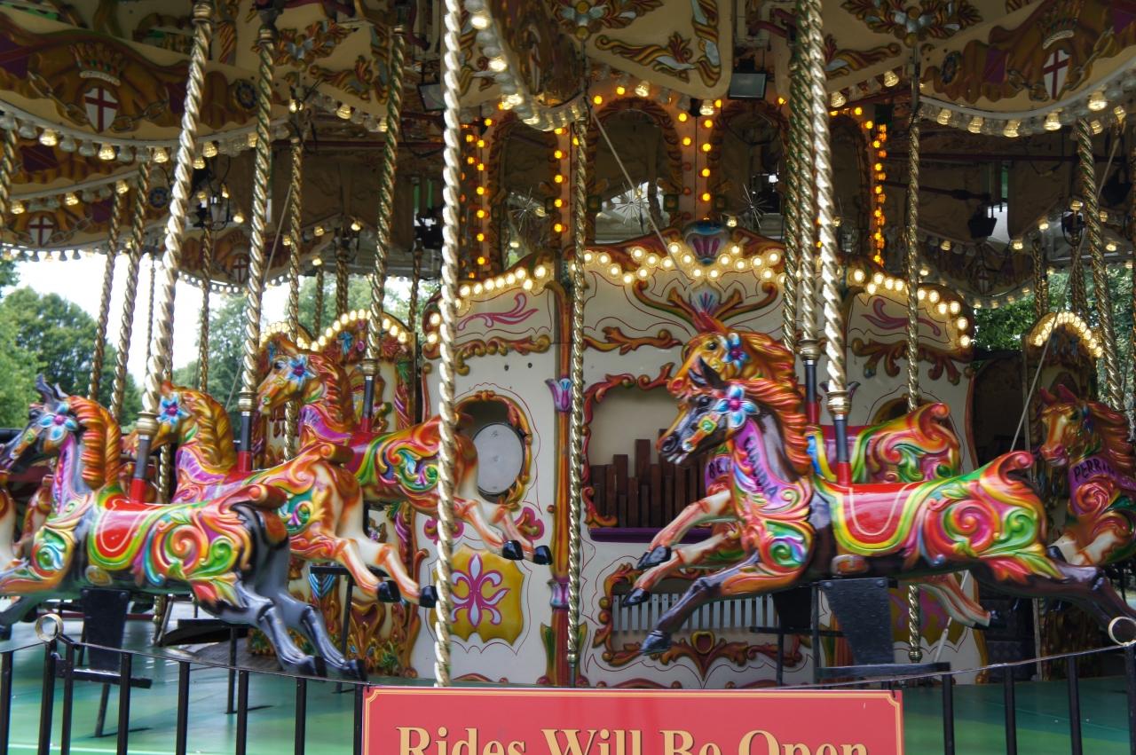 広い公園の中にメリーゴーランド。 -