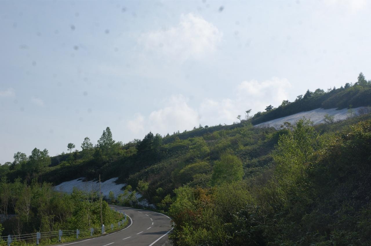 この時間 観光客の車は、1台しか遭遇せず。残雪多し