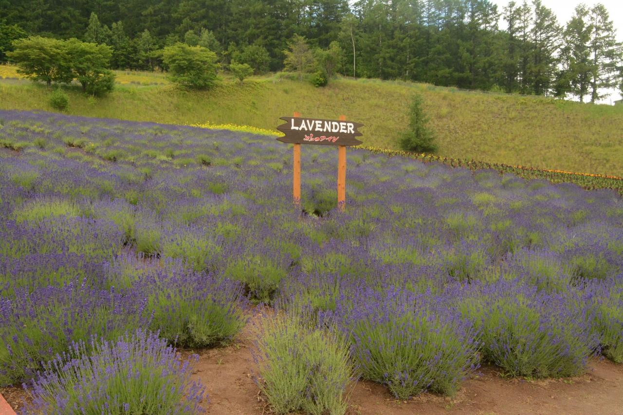テレビを見終わっても外は雨。意を決して富良野まで行くことにした。ラヴェンダーは8月の干からびたのしか見ていない。時期的にまだ早いが、咲き始めているところはないかと検索してふらのワイン工場を目的地にした。1時間半くらいで着いた。たしかに紫色が広がっているし、においもいい。でももう一歩だろう。