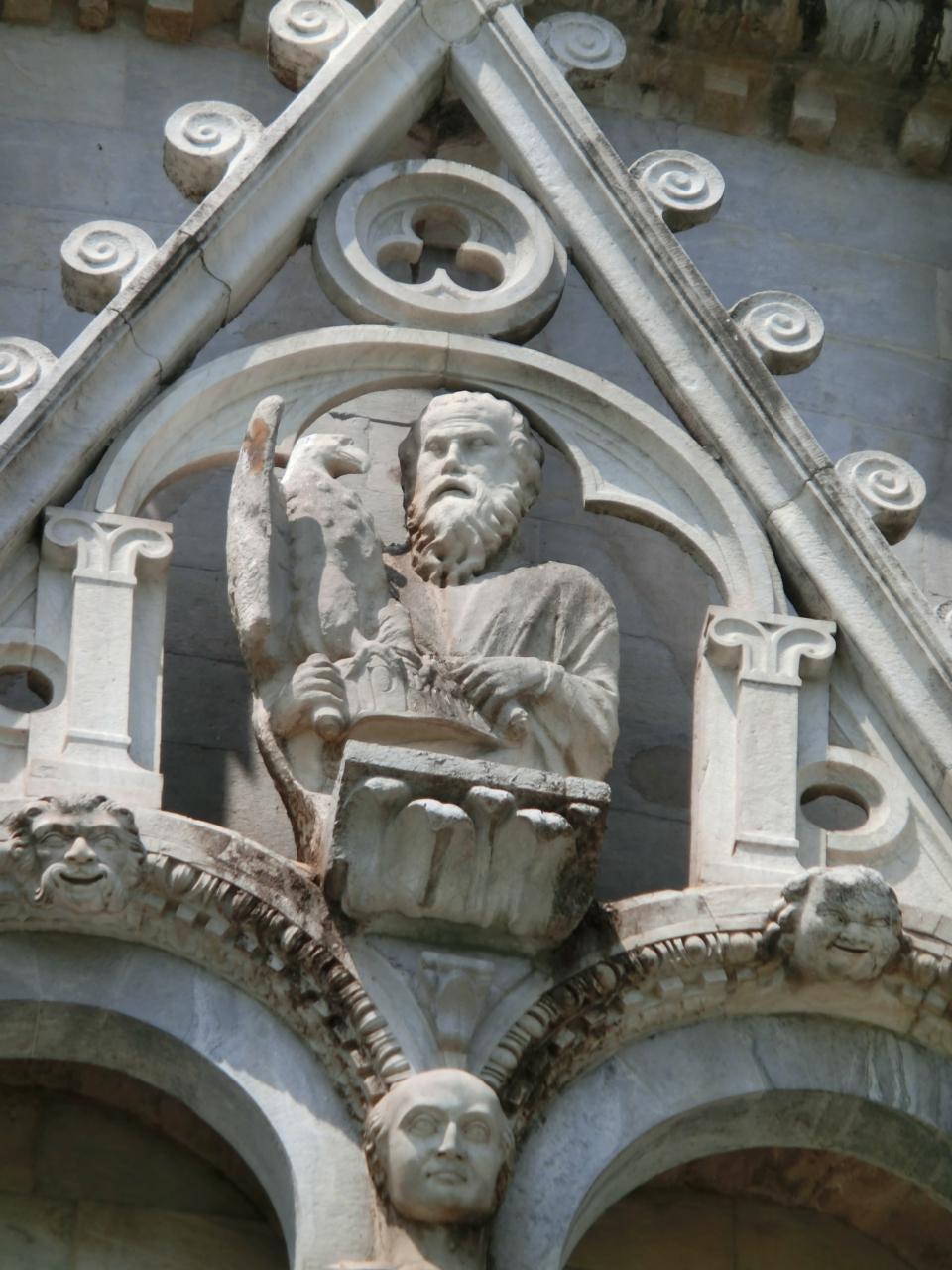 ボナンノ・ピサーノ作。(ヴァザーリの芸術家列伝で斜塔の設計ミスの張本人と間違って名指しされた人とのこと)
