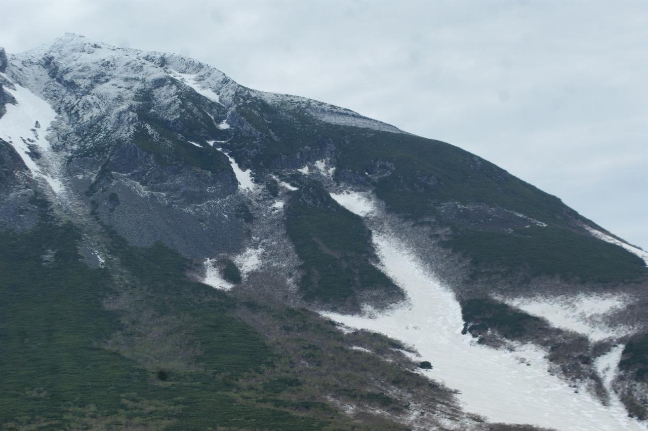 残雪光る山々残雪の知床連山国後島には、羅臼山あり 最高峰は爺爺岳(1822m) -